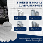 Die Winkelleiste Alu ist aus hochwertigem EN AW-6060 Aluminium gefertigt. Der Aluminium Winkel ist sehr robust & langlebig.
