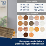 Unsere Fußleisten werden in einer Länge von 2 Metern geliefert. Die Fußleisten aus PVC-Kunststoff schaffen ein einheitliches und harmonisches Flair in Ihren Räumen. Perfekt als Wandabschlussleiste. Weichlippen an der Ober- & Unterseite sorgen für einen schönen Übergang zwischen Boden & Wand. Gleicht auch unebene Böden & Wände aus. Als Sockelleiste Kabelkanal können Sie Kabelführungen ganz einfach hinter der Bodenleiste verstecken. Eigenschaften: moderne Gestaltung - hochwertiges Holzdesign - passendes Zubehör erhältlich: Innenecken, Außenecken, Verbinder, Endstücke rechts- und links (im montierten Zustand) - einfache Montage - große Farbpalette - aus eigener Herstellung.