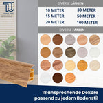 Unsere Fußleisten werden in einer Länge von 2 Metern geliefert. Die Fußleisten aus PVC-Kunststoff schaffen ein einheitliches und harmonisches Flair in Ihren Räumen. Perfekt als Wandabschlussleiste. Weichlippen an der Ober- & Unterseite sorgen für einen schönen Übergang zwischen Boden & Wand. Gleicht auch unebene Böden & Wände aus. Als Sockelleiste Kabelkanal können Sie Kabelführungen ganz einfach hinter der Bodenleiste verstecken. Eigenschaften: moderne Gestaltung - hochwertiges Holzdesign - passendes Zubehör erhältlich: Innenecken, Außenecken, Verbinder, Endstücke rechts- und links (im montierten Zustand) - einfache Montage - große Farbpalette - aus eigener Herstellung.