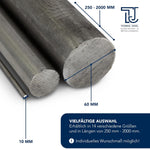 Kontaktieren Sie uns für Sonderanfertigungen, genau nach Ihren Maßvorgaben und spezifischen Anforderungen. Beim Auspacken unseres Rundstahl Automatenstahls ist Vorsicht geboten, da das Material direkt aus der Produktion kommt und somit Schmutz und möglicherweise scharfe Kanten aufweisen kann.
