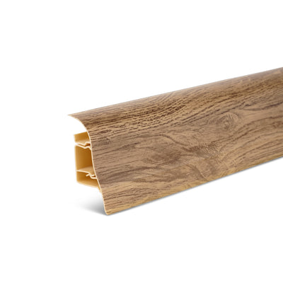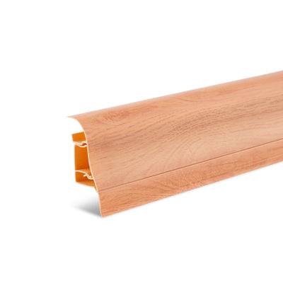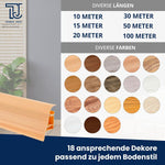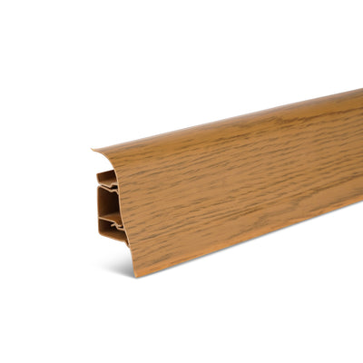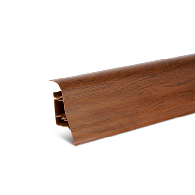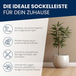 Unsere Fußleisten werden in einer Länge von 2 Metern geliefert. Die Fußleisten aus PVC-Kunststoff schaffen ein einheitliches und harmonisches Flair in Ihren Räumen. Perfekt als Wandabschlussleiste. Weichlippen an der Ober- & Unterseite sorgen für einen schönen Übergang zwischen Boden & Wand. Gleicht auch unebene Böden & Wände aus. Als Sockelleiste Kabelkanal können Sie Kabelführungen ganz einfach hinter der Bodenleiste verstecken. Eigenschaften: moderne Gestaltung - hochwertiges Holzdesign - passendes Zubehör erhältlich: Innenecken, Außenecken, Verbinder, Endstücke rechts- und links (im montierten Zustand) - einfache Montage - große Farbpalette - aus eigener Herstellung.